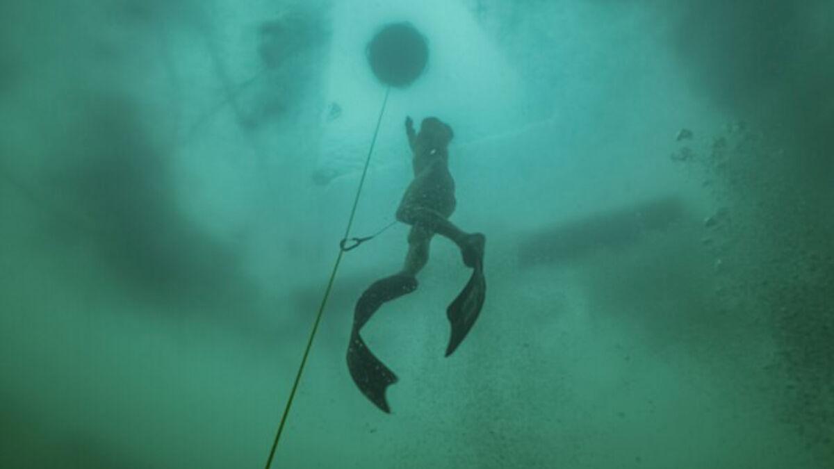 Çek hür dalgıç David Vencl, İsviçre’deki donmuş Sils Gölü’ne tek nefeste dalgıç giysisi olmadan daldı.
